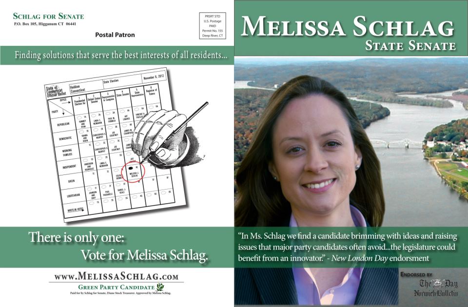 "In Ms. Schlag we find a candidate brimming with ideas and raising issues that major party candidates often avoid...the legislature could benefit from an innovator."