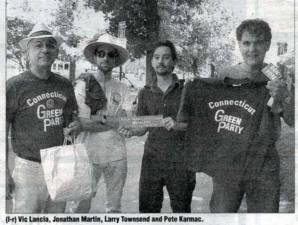 Jean DeSmet, who heads the Windham County chapter, says "The Green Party startted in Connecticut four years ago as an alternative to the duopololy of republicrats. Republicans and Democrats are the same party. There is no choice for voters." |